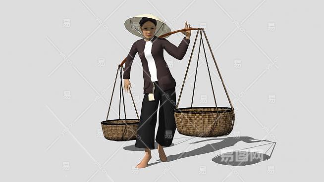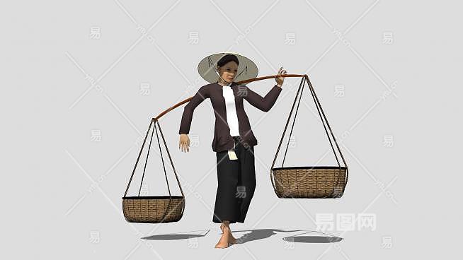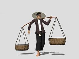 挑担的农民SU模型下载_sketchup草图大师SKP模型