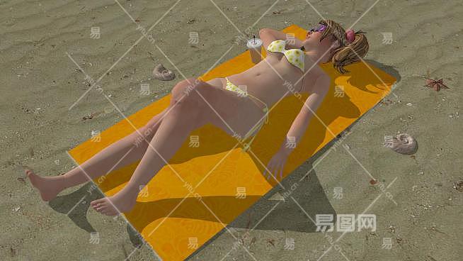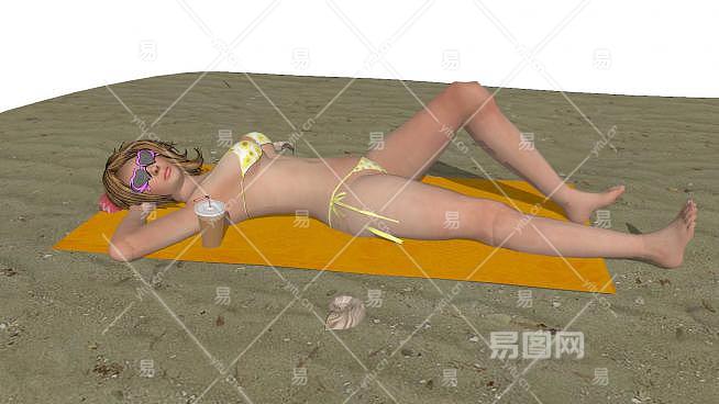 沙滩美女人物SU模型下载_sketchup草图大师SKP模型