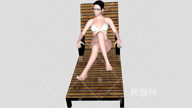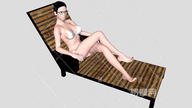 沙滩美女躺椅SU模型下载_sketchup草图大师SKP模型