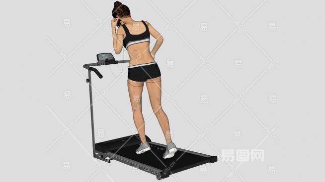 跑步机上的运动美女SU模型下载_sketchup草图大师SKP模型