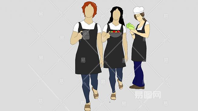 2D女厨师人物SU模型下载_sketchup草图大师SKP模型