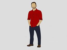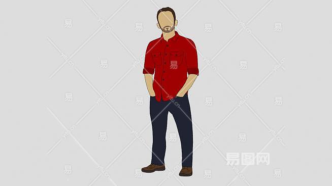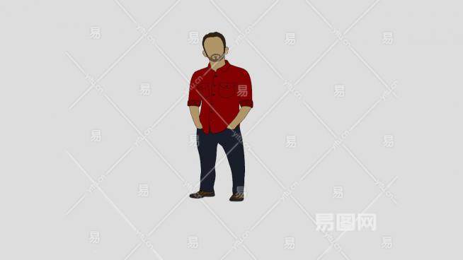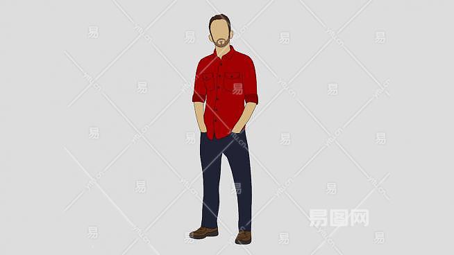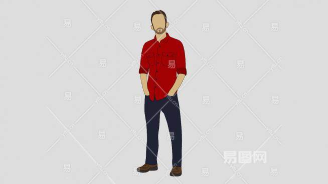 红衬衫平面男性人物SU模型下载_sketchup草图大师SKP模型