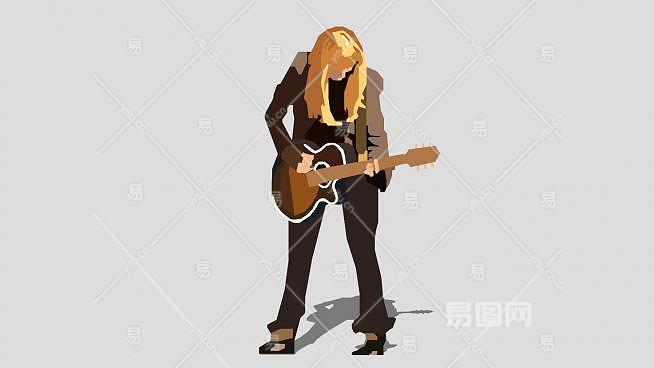 吉他手女表演者SU模型下载_sketchup草图大师SKP模型
