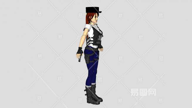 3D持械女警SU模型下载_sketchup草图大师SKP模型