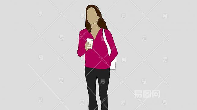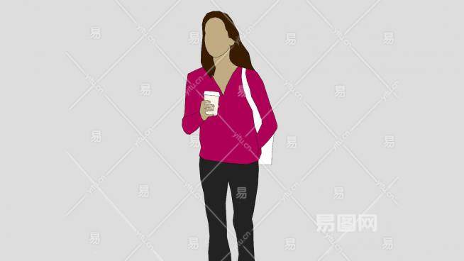 女人端着咖啡SU模型下载_sketchup草图大师SKP模型
