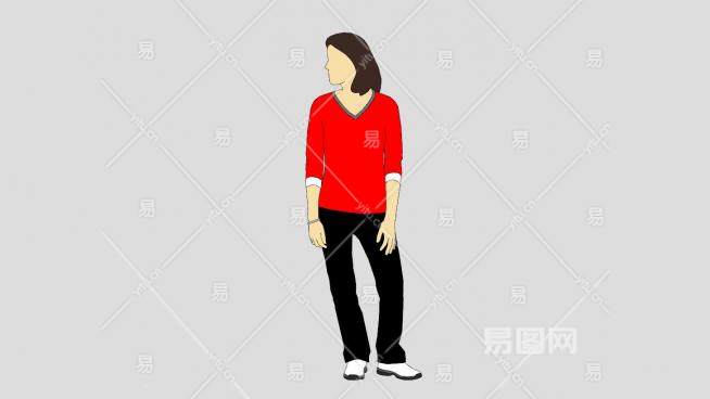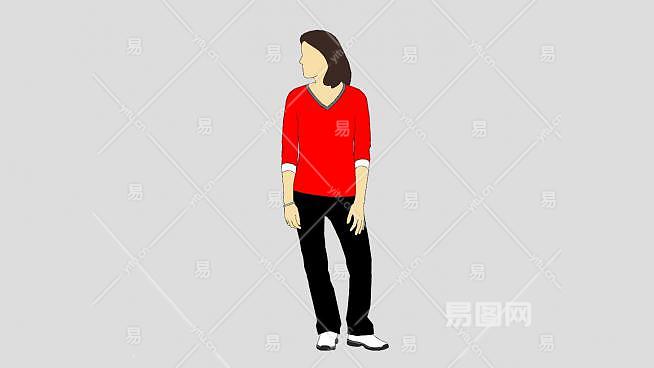 红色衣服女人SU模型下载_sketchup草图大师SKP模型