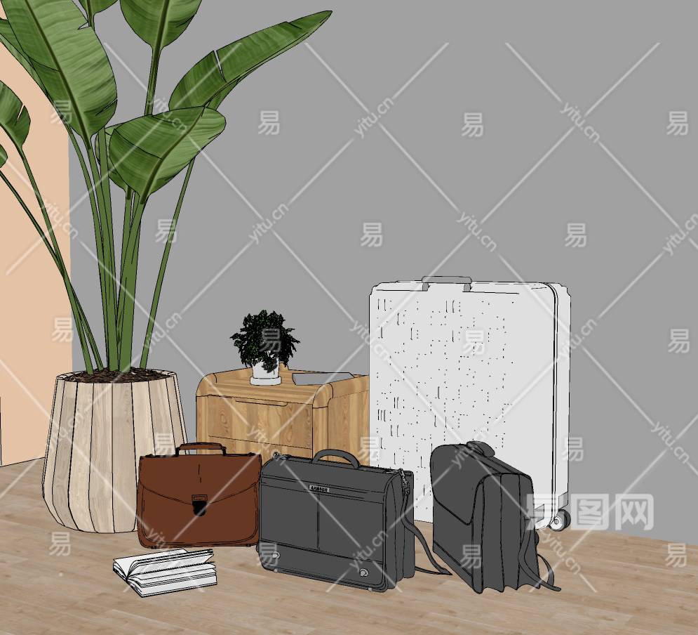 现代箱包组合su草图模型下载
