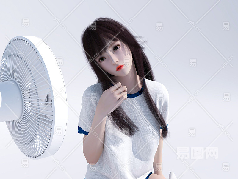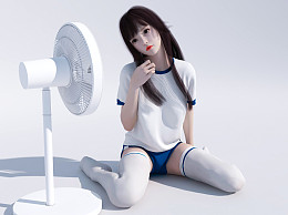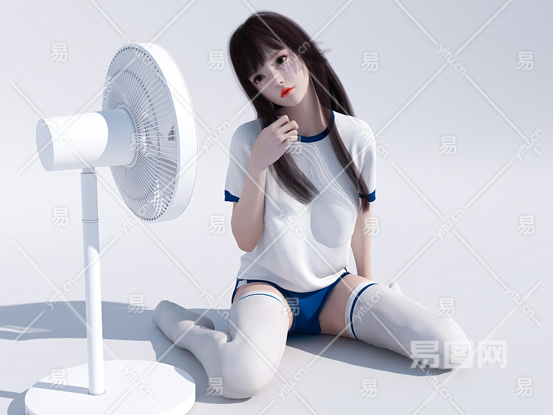 吹风扇女性 动漫少女 女人女性 体操校服美女 小姐姐人物