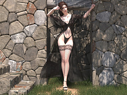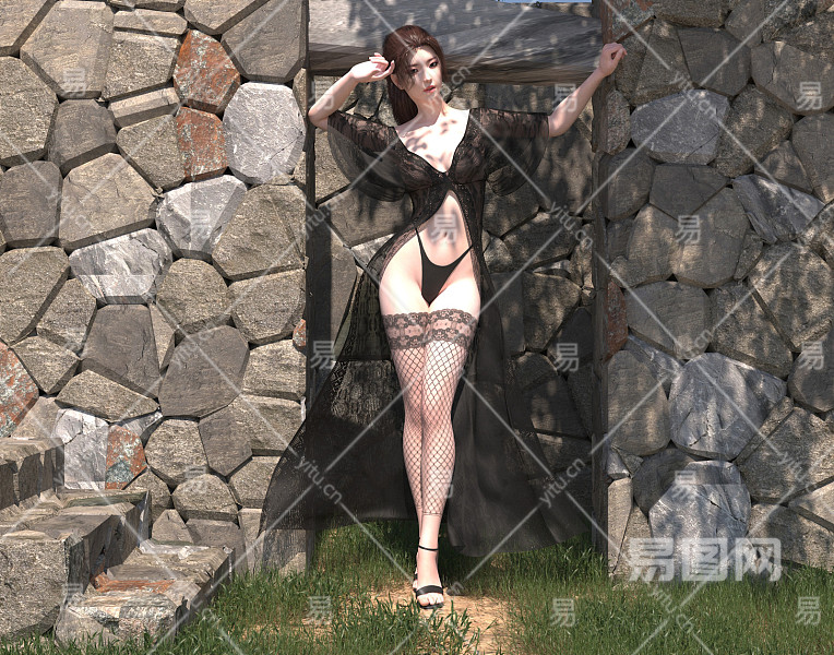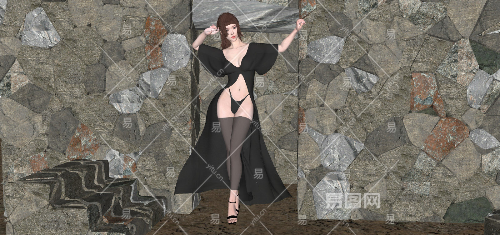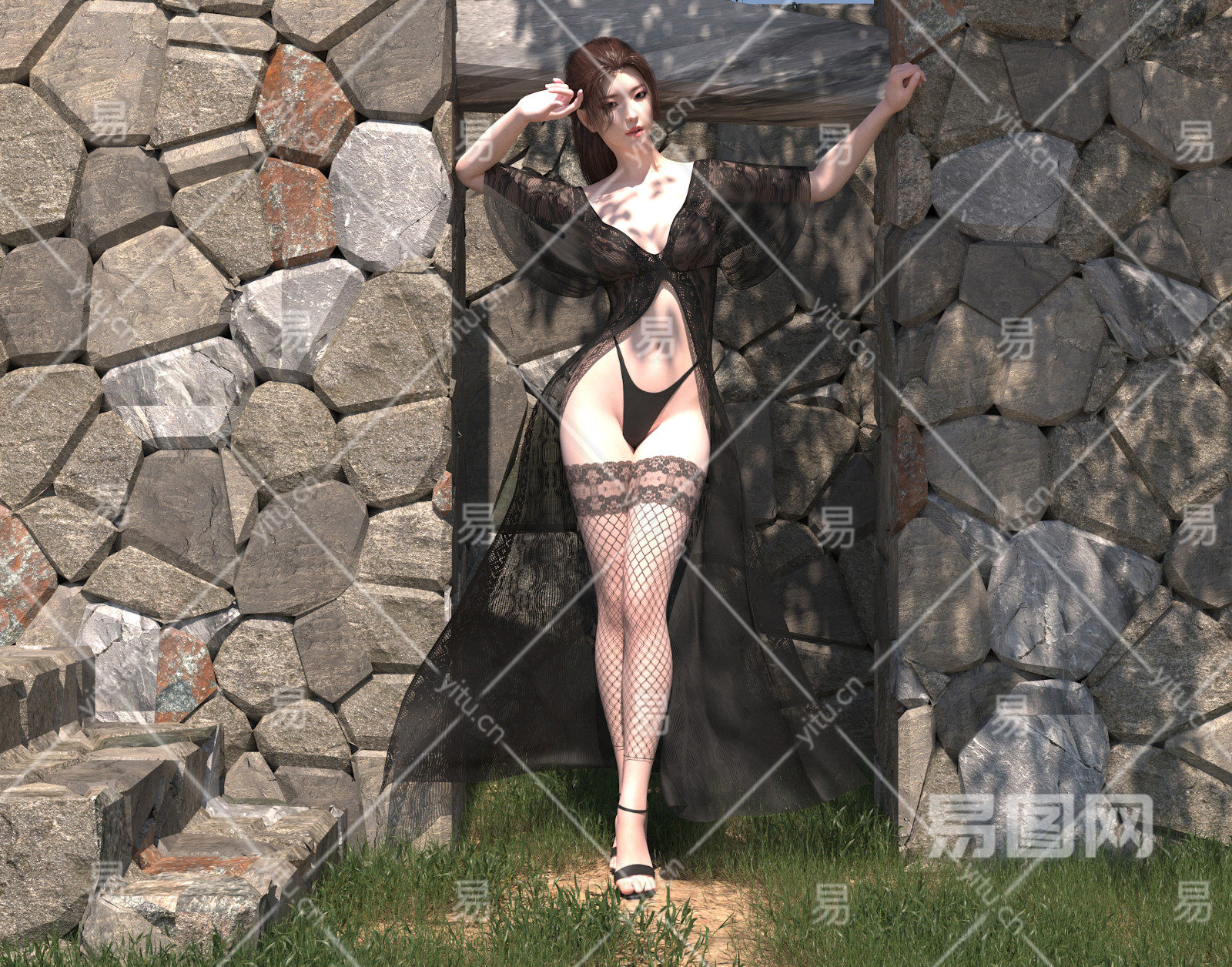 现代女人 人物 美女 睡衣模特 可爱女孩 毛石景墙