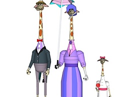 现代卡通长颈鹿一家su模型