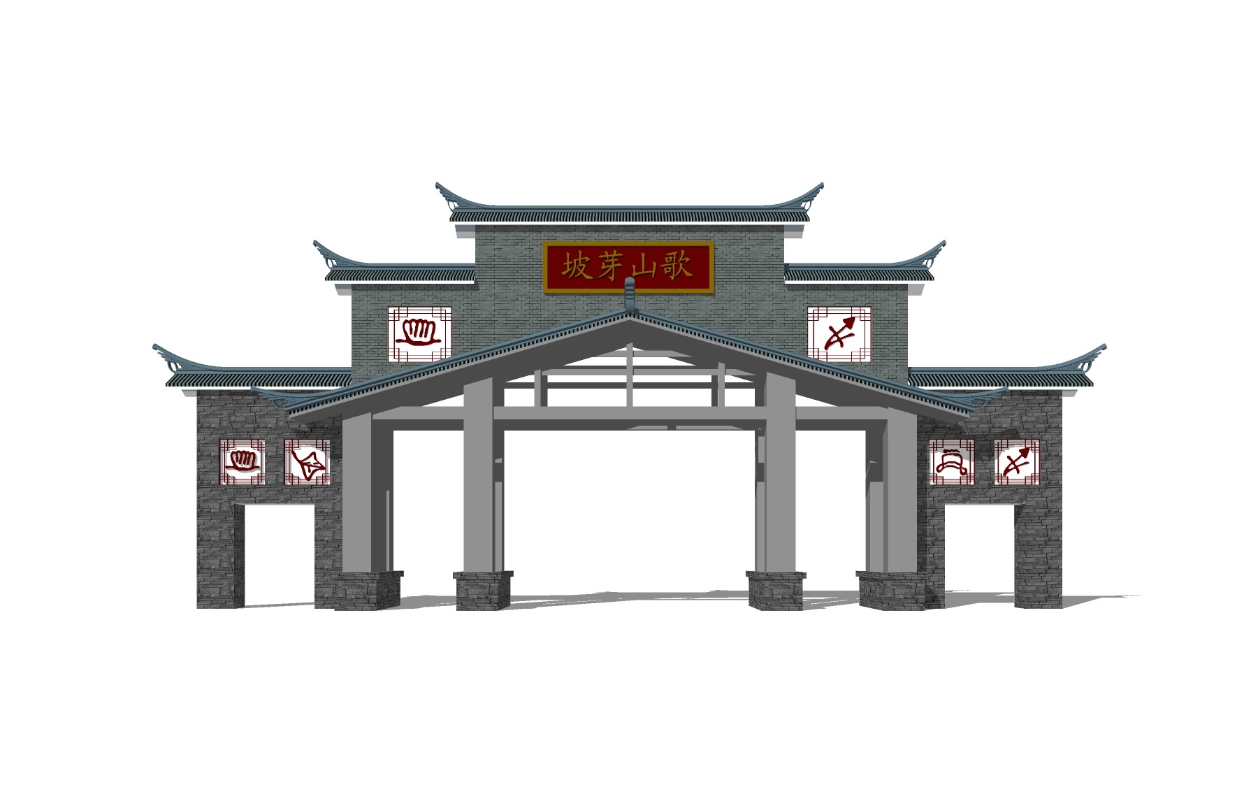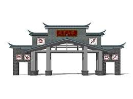 中式小区大门入口草图大师模型,小区大门入口sketchup模型免费下载