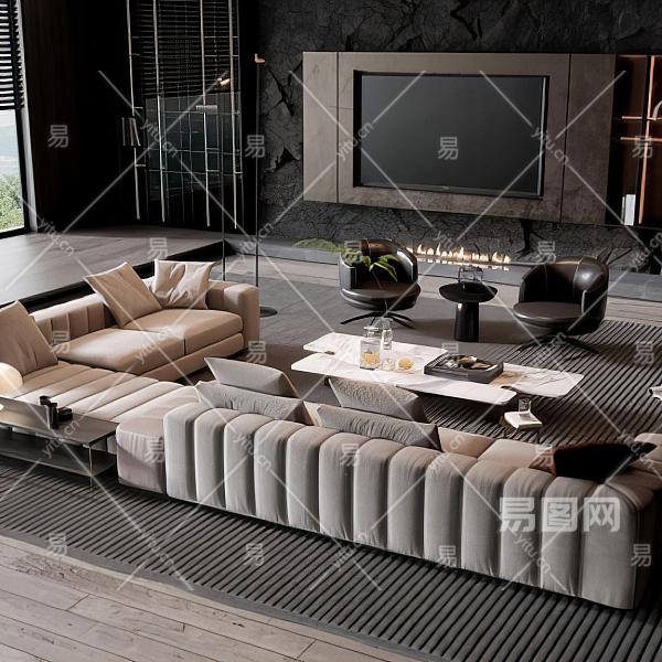 Minotti 米洛提现代沙发茶几组合 转角沙发茶几