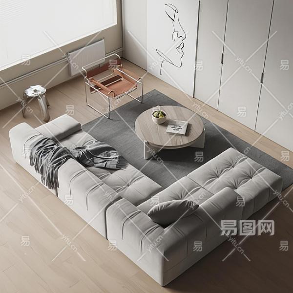 Woodnotes 现代沙发茶几组合 转角沙发圆形茶几
