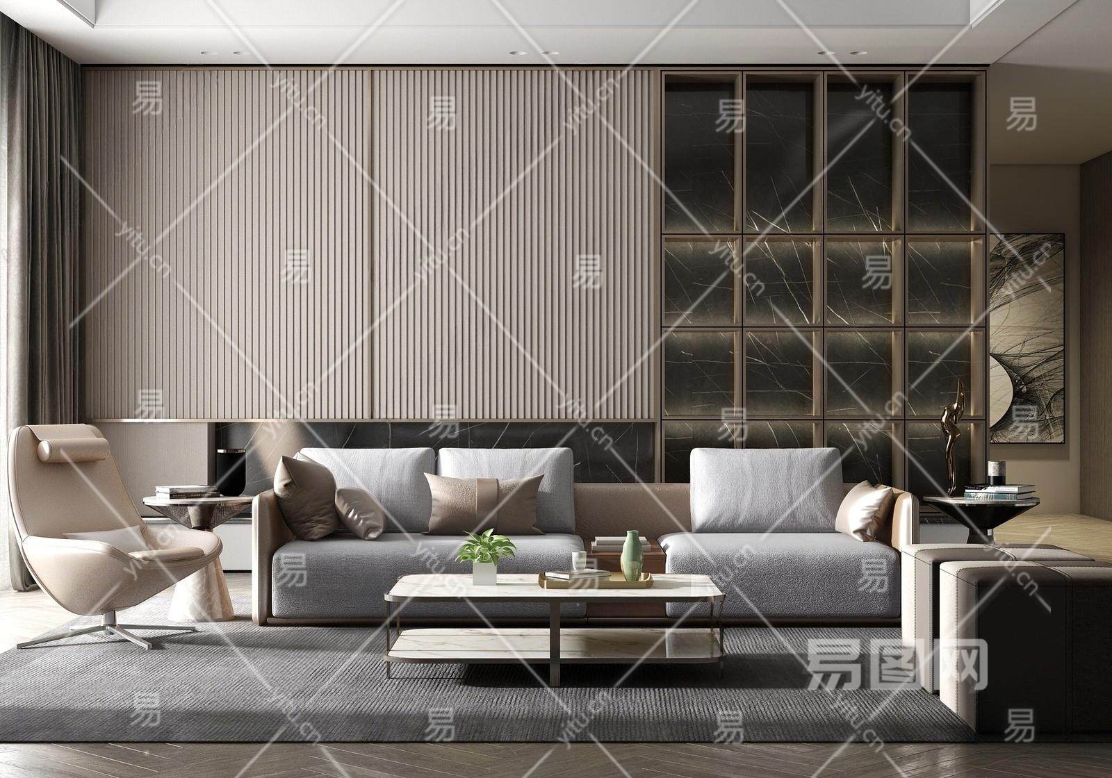 现代轻奢休闲多人沙发 茶几 饰品组合