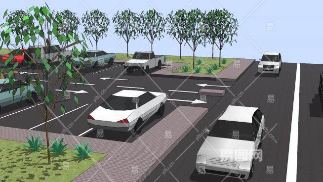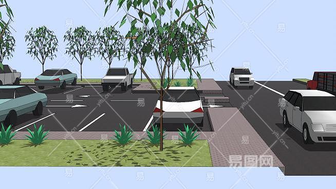 停车场停车位的SU设计模型下载_sketchup草图大师SKP模型