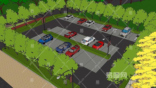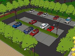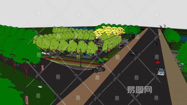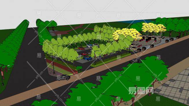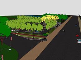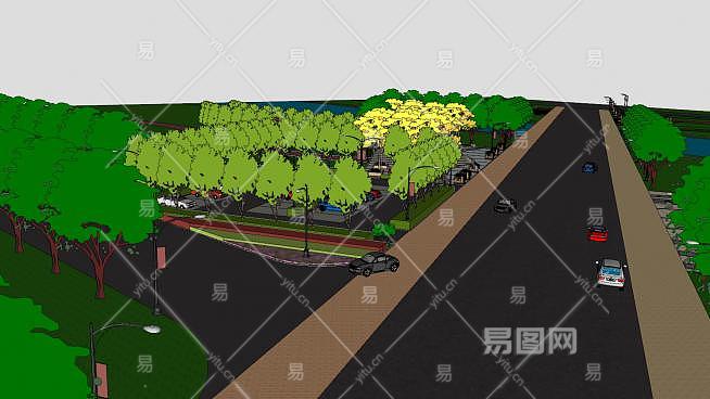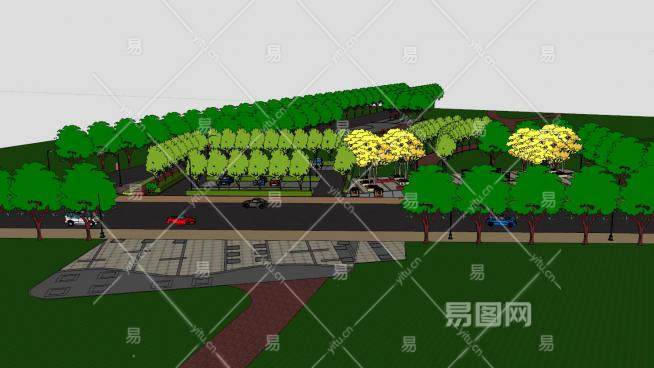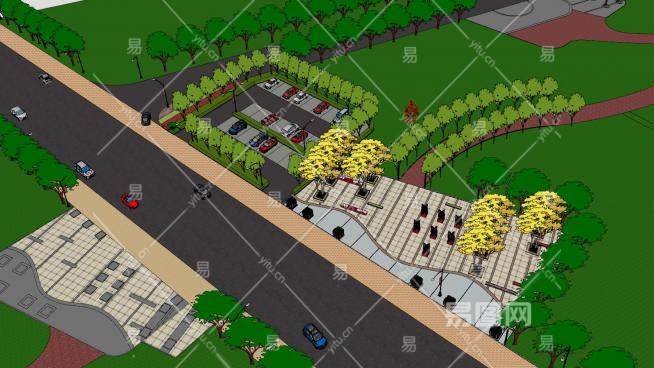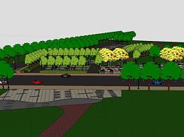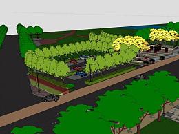 滨河公园三个入口设计及停车场SU模型下载_sketchup草图大师SKP模型