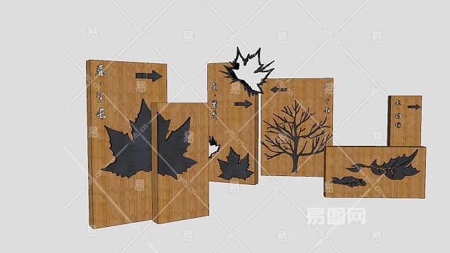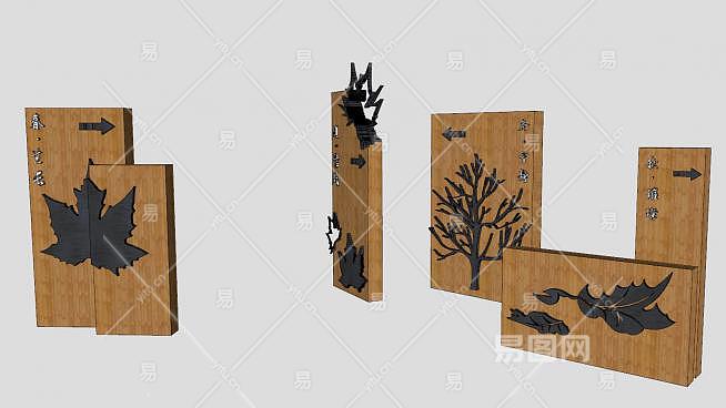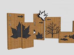 枫叶指示牌指引牌SU模型下载_sketchup草图大师SKP模型