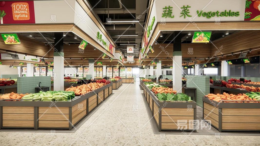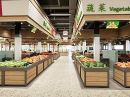 现代农贸市场蔬菜干货区 菜市场 蔬菜展示柜 熟食摊位