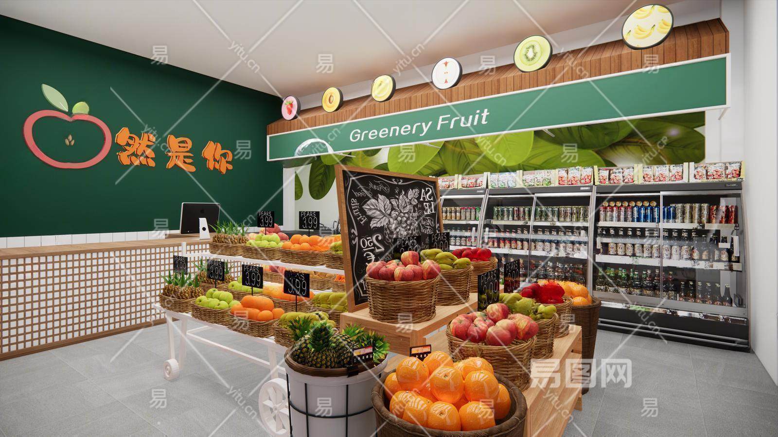现代水果超市 绿叶连锁水果超市 水果货架 冷藏架
