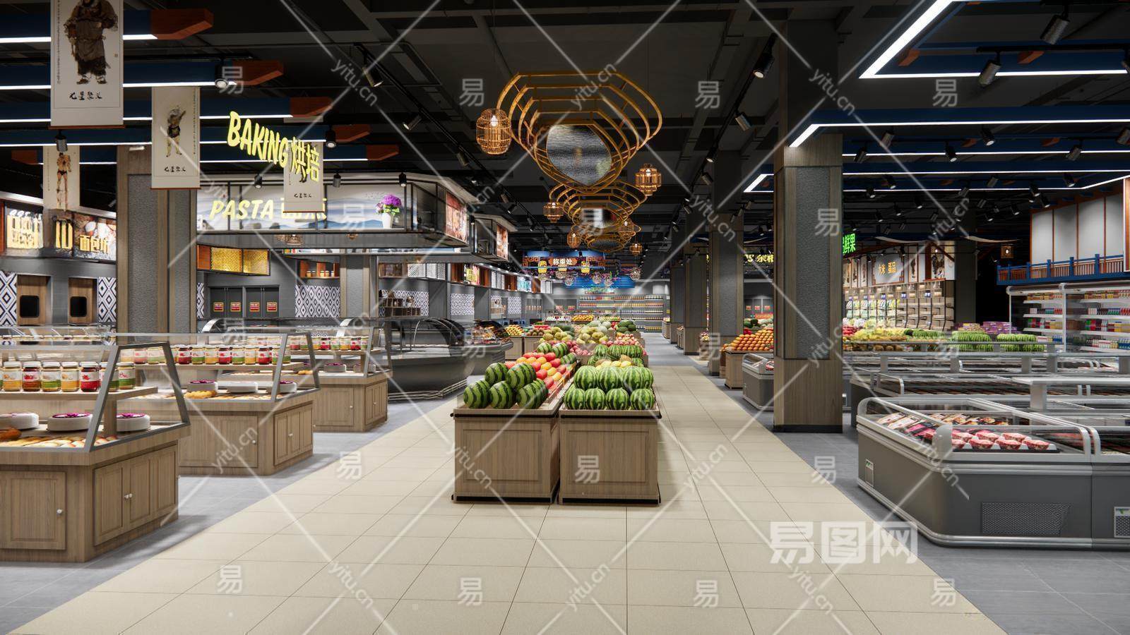 现代超市 生鲜 水果 蔬菜 鲜肉 货架