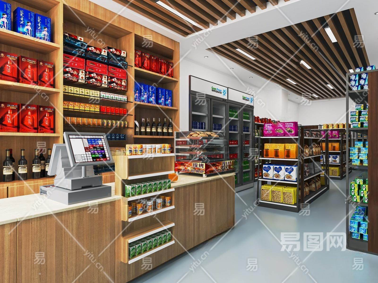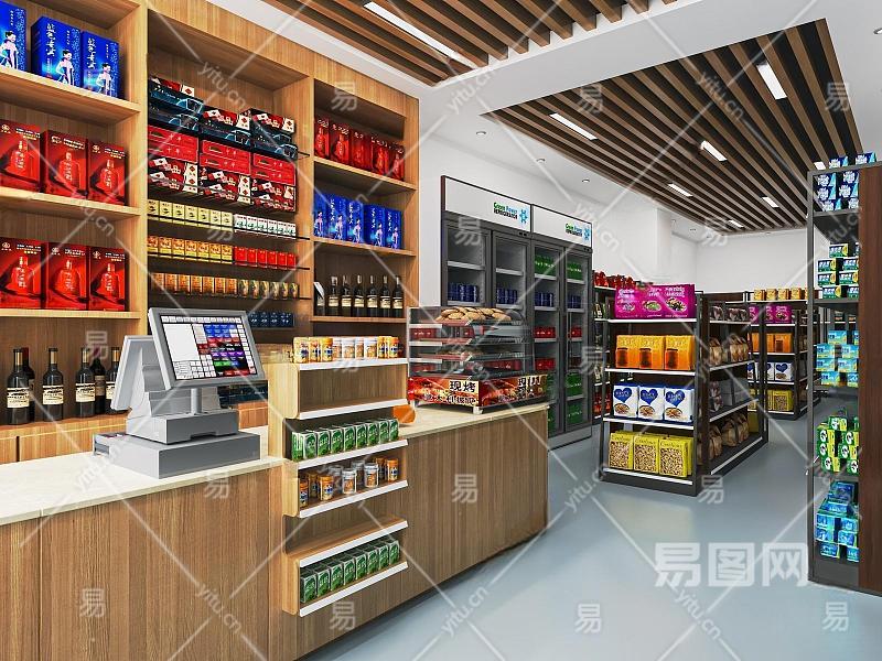 现代超市 便利店 零食店 超市货架 展柜 收银台 冰柜
