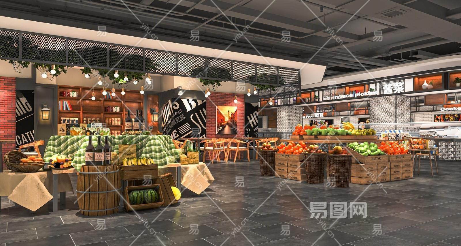 现代超市 生鲜超市 超市生鲜区 水果蔬菜 粮油 商品货架