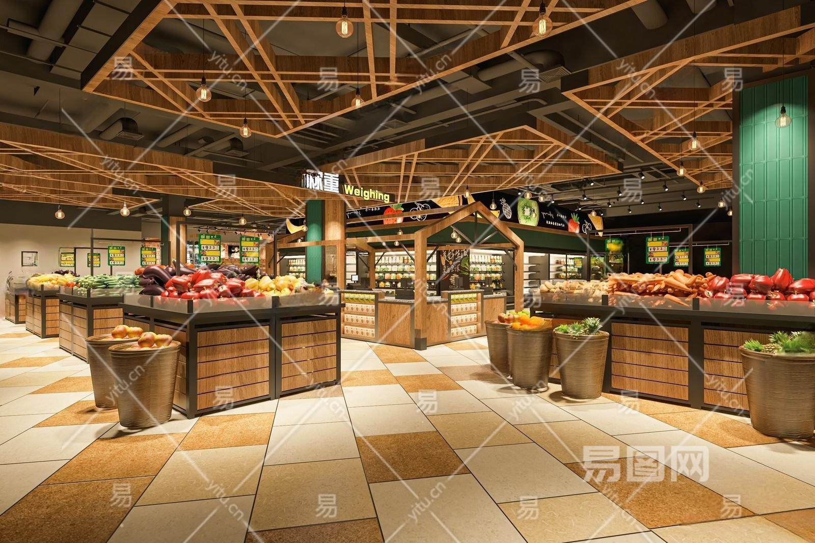 现代超市 生鲜超市 超市生鲜区 水果蔬菜 粮油 商品货架