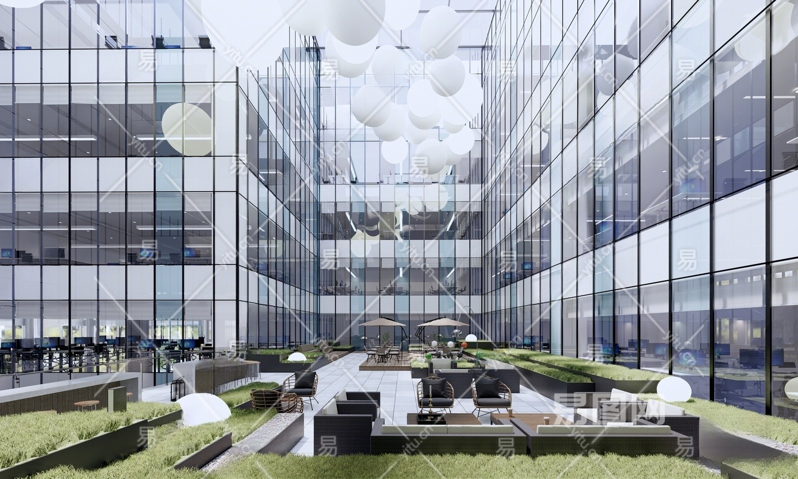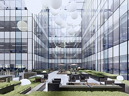 现代办公景观 办公中庭休息区