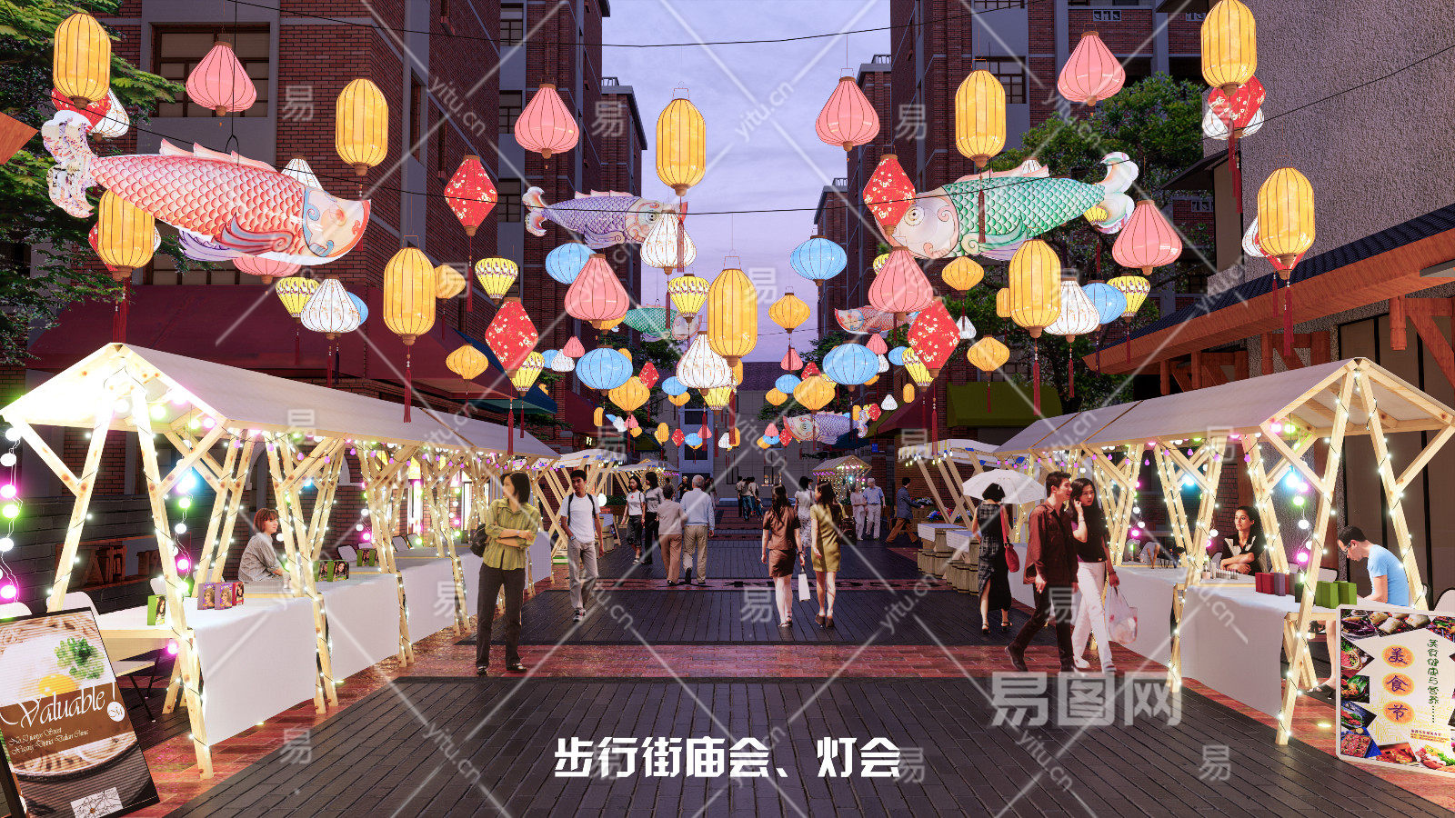 中式商业街 庙会 灯会 氛围灯 彩灯 灯串 灯笼 售卖车 摊位