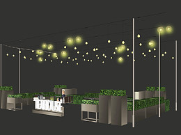 现代商业街外摆景观 氛围灯 灯串 户外座椅 花箱