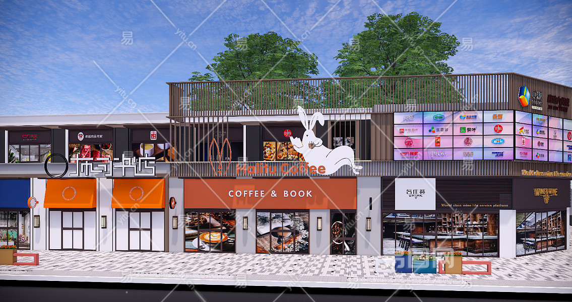现代商业街 店铺铺面 门头招牌 店招广告牌 商店logo