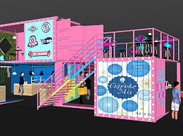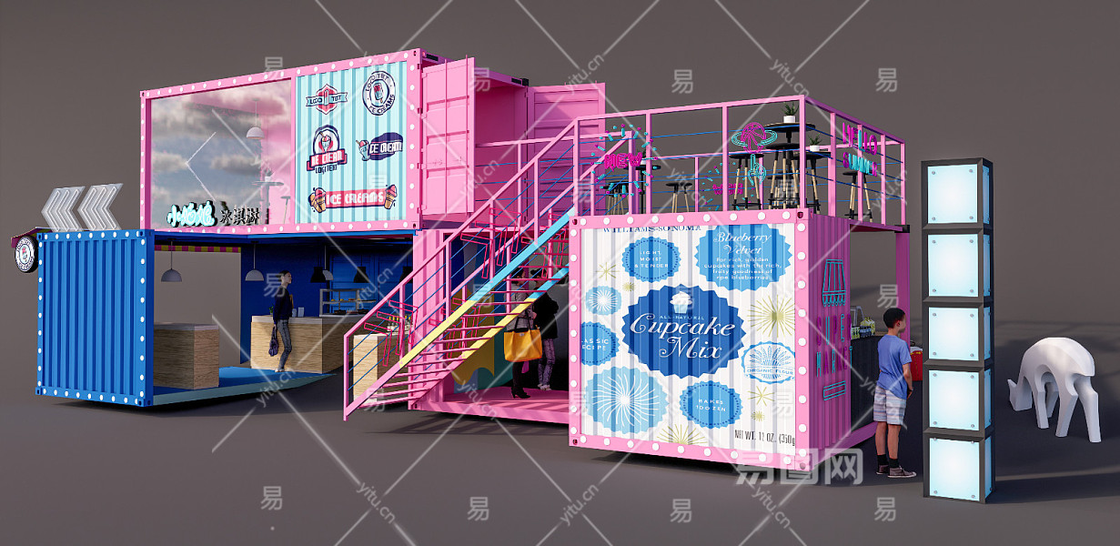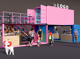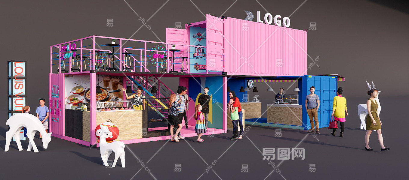 现代集装箱餐饮建筑 氛围灯 酒吧 奶茶店 咖啡厅 售卖亭 广告牌