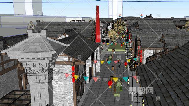 旅游文化主题商业街建筑SU模型下载_sketchup草图大师SKP模型