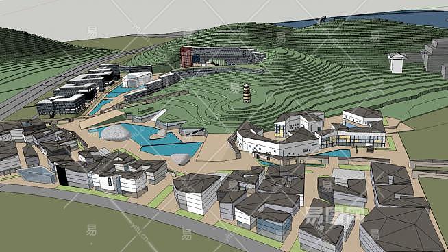 风景区步行街商业建筑SU模型下载_sketchup草图大师SKP模型