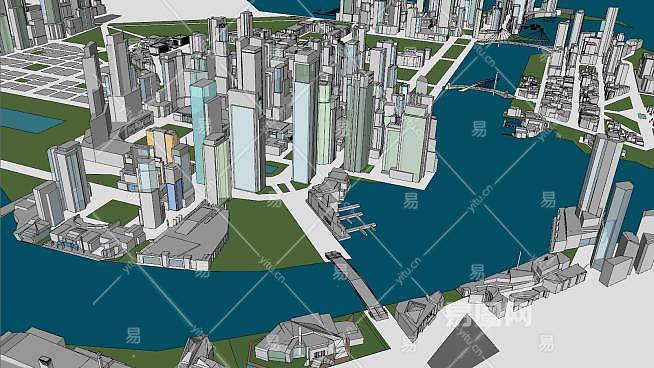 莫尚顿市城市海景建筑SU模型下载_sketchup草图大师SKP模型