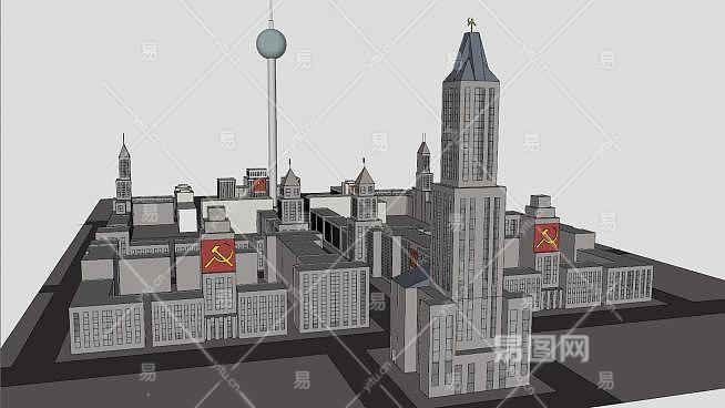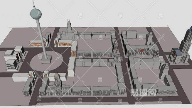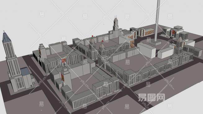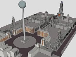 城市广场规划建筑SU模型下载_sketchup草图大师SKP模型