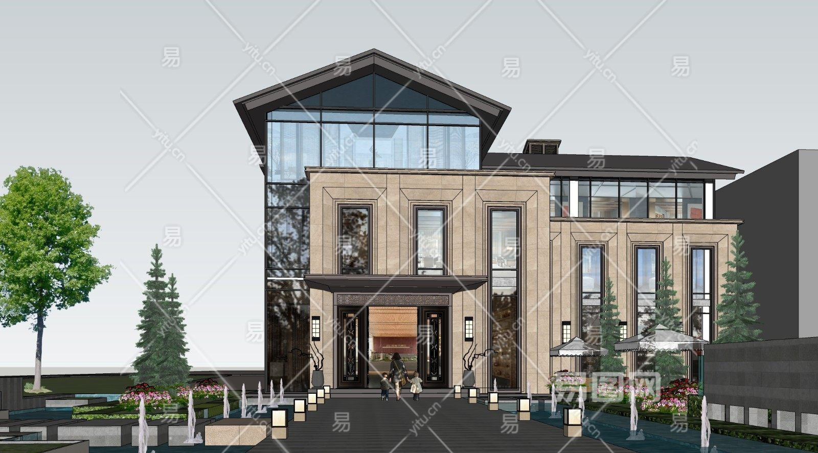 当前的位置:首页 > sketchup > sketchup模型 > 建筑 > 商业综合 > 现代售楼处,入口景观,景观水池,简欧立面,新中式景观