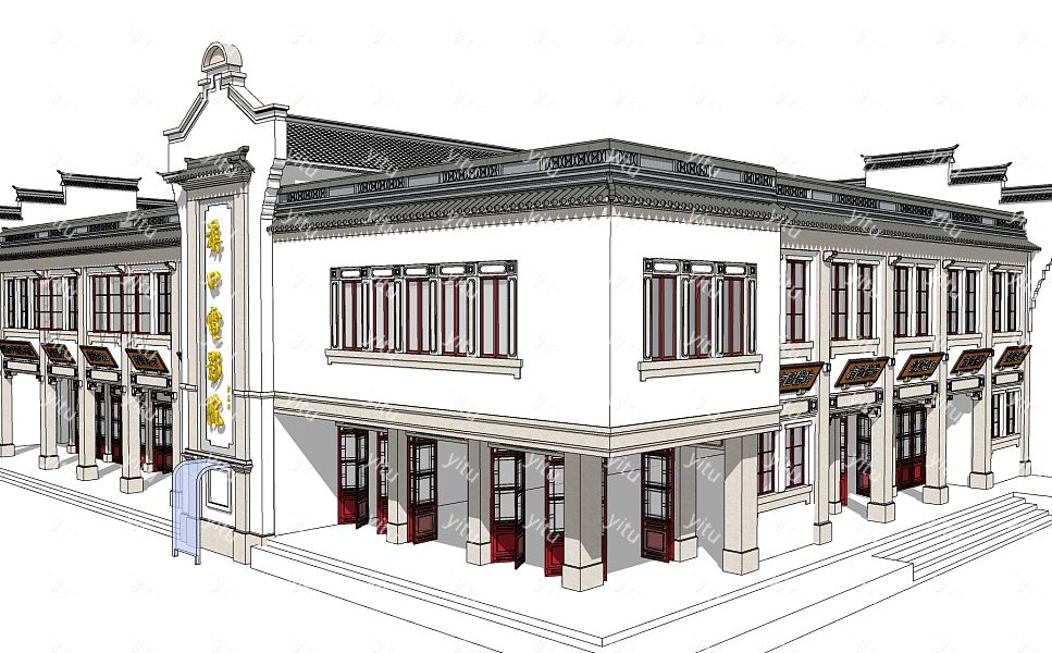 民国风商场草图大师模型,商铺sketchup模型免费下载