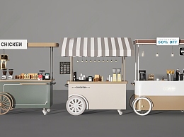 现代售货推车 贩卖车 摊车 货车 展示柜 展台 街景车 小吃车 快餐车