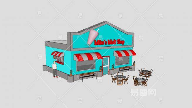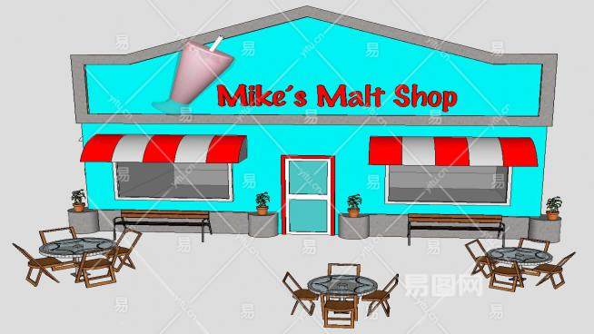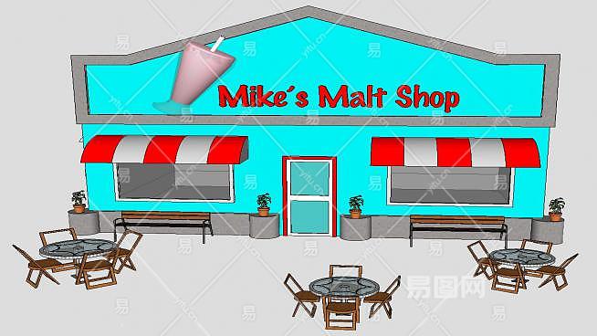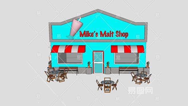 迈克甜品冰淇淋店SU模型下载_sketchup草图大师SKP模型