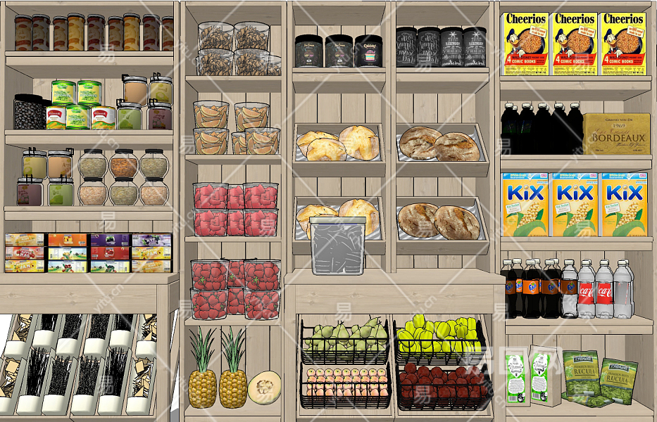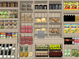 现代商场超市货架食物小食品su草图模型下载