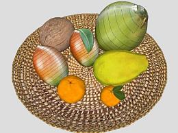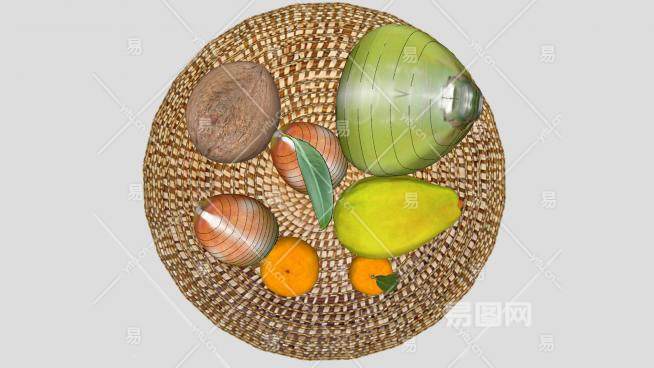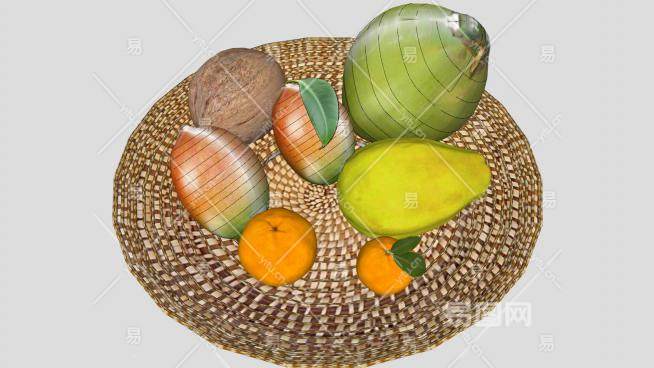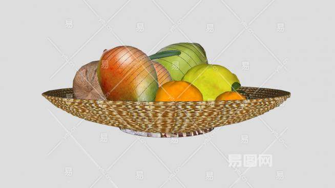 编织果盆和四种水果SU模型下载_sketchup草图大师SKP模型