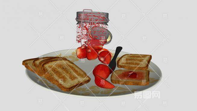 草莓果酱吐司面包SU模型下载_sketchup草图大师SKP模型