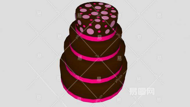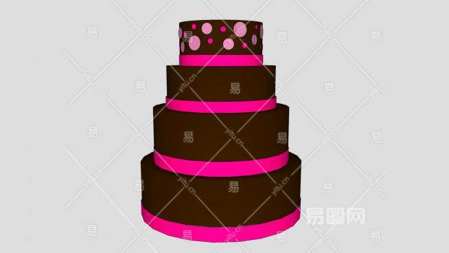 四层巧克力婚礼蛋糕SU模型下载_sketchup草图大师SKP模型