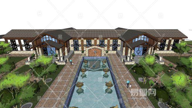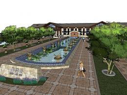 中式别墅小区售楼处SU模型下载_sketchup草图大师SKP模型