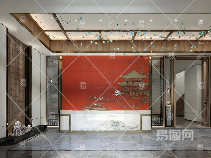 新中式售楼处门厅模型