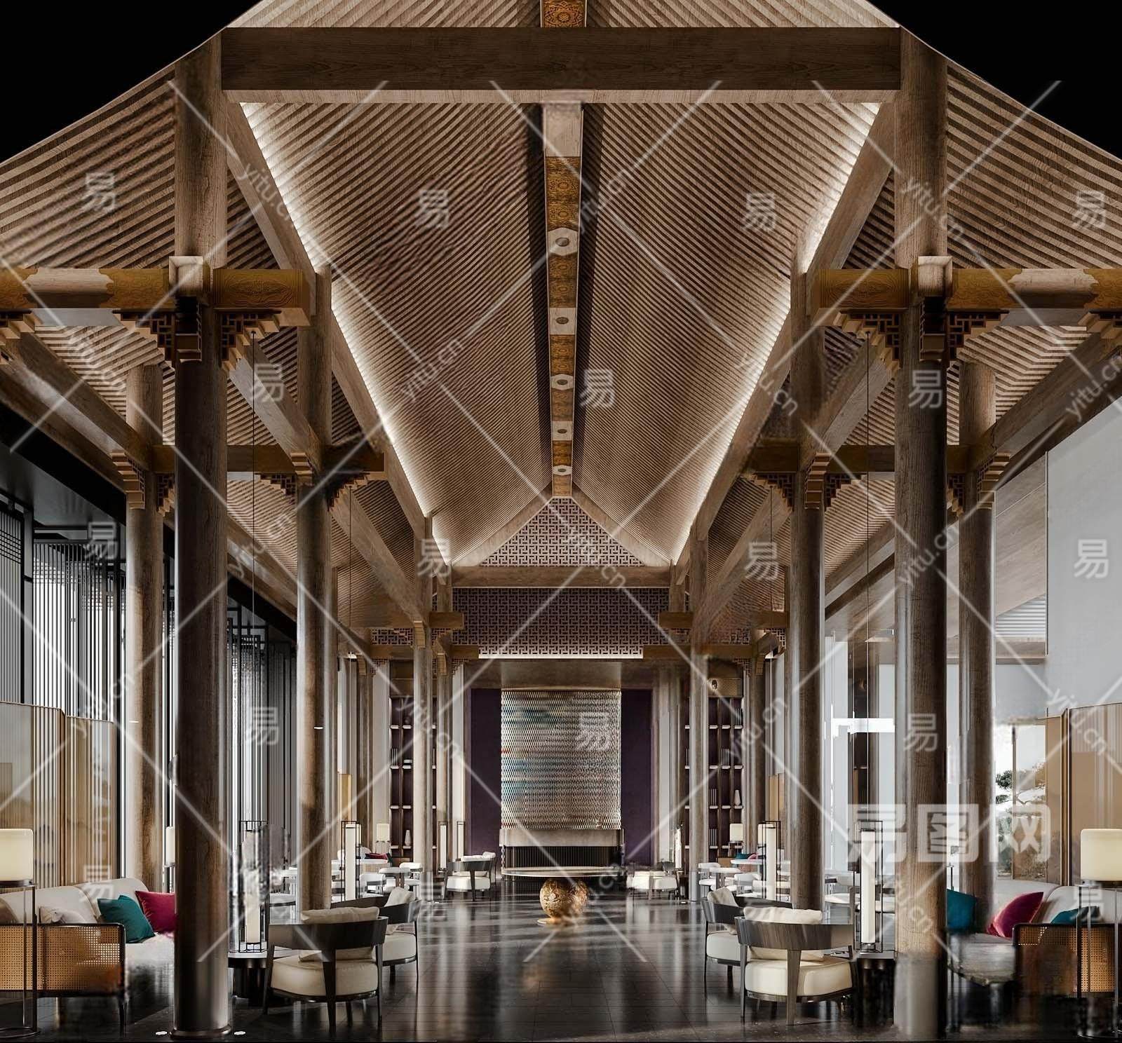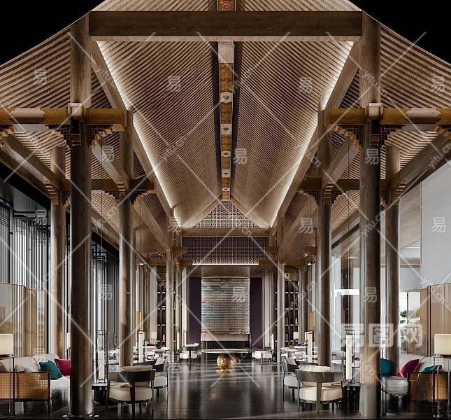 新中式售楼部 洽谈区 接待大厅 洽谈区 沙盘