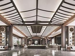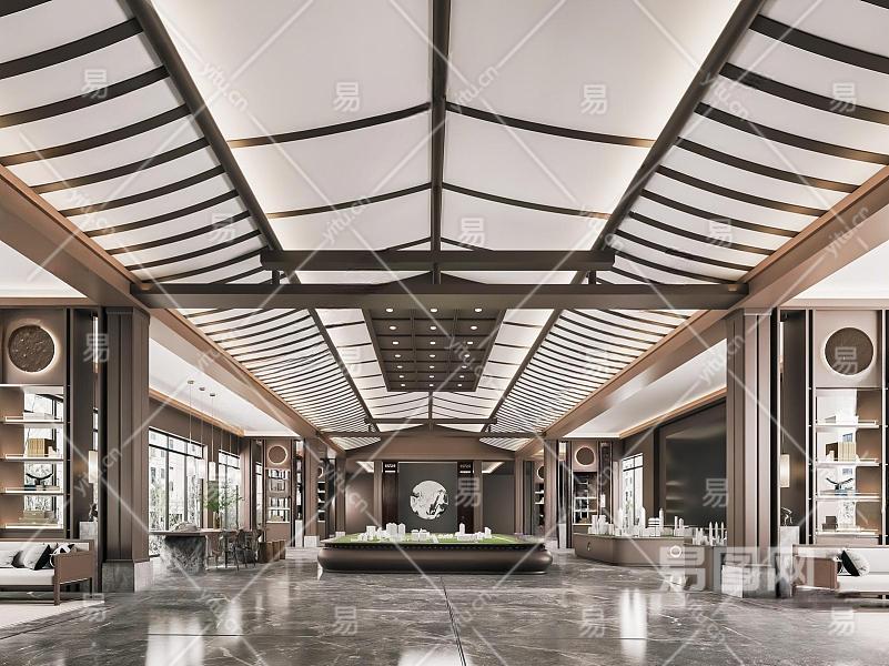 新中式售楼部大厅 接待大厅 沙盘区 售楼部吊灯 洽谈区