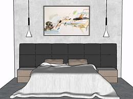 现代布艺双人床su模型