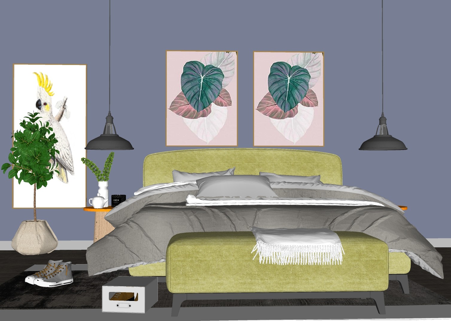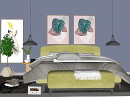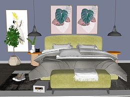 北欧双人床su模型,北欧双人床sketchup模型下载